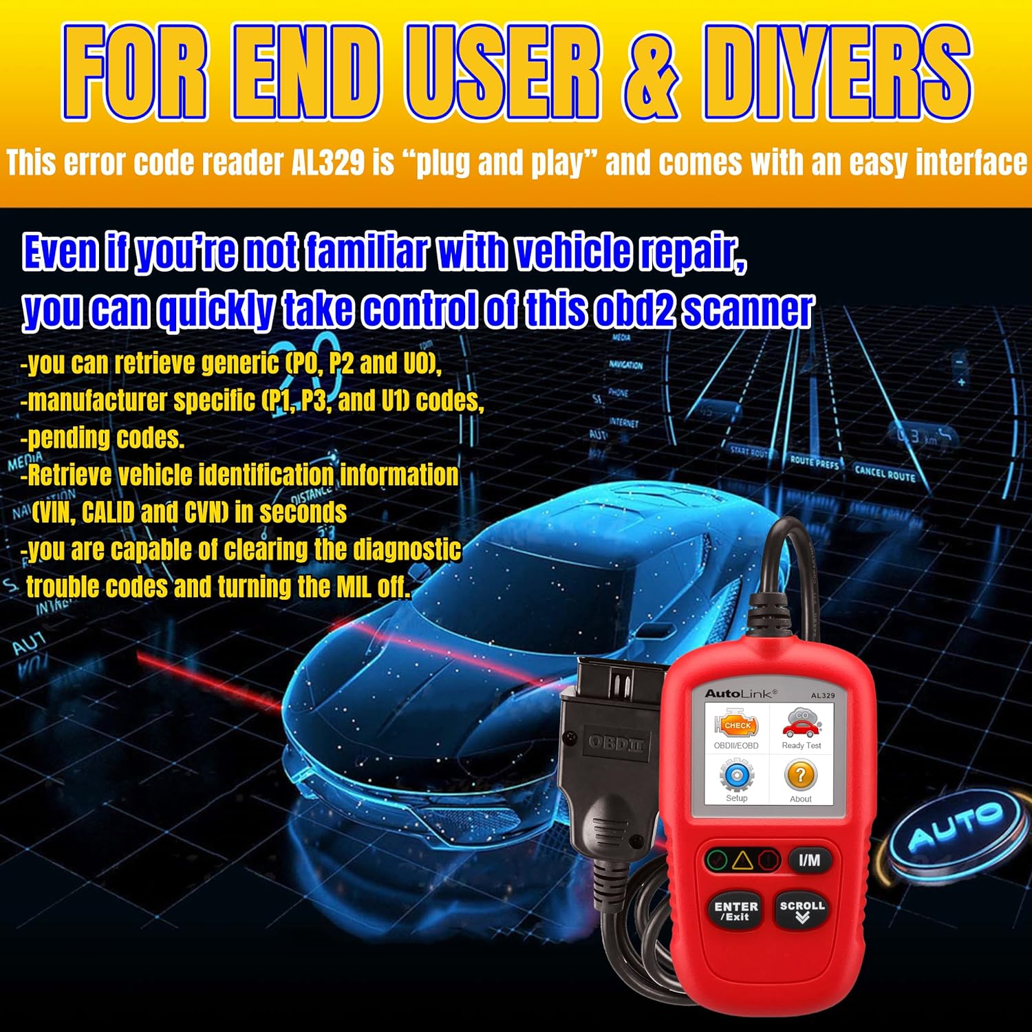 Autel AL329 AutoLink Vehicle OBD2 Diagnostic Tool Car Code Reader with I/M Readiness Key Read/Erase Codes Turns Off MIL Plug and Play Retrieves VIN/CALID/CVN Free Lifetime Update(Autel AL329 AutoLink Vehicle OBD2 Diagnostic Tool Car Code Reader with I/M Readiness Key Read/Erase Codes Turns Off MIL Plug and Play Retrieves VIN/CALID/CVN Free Lifetime Update)