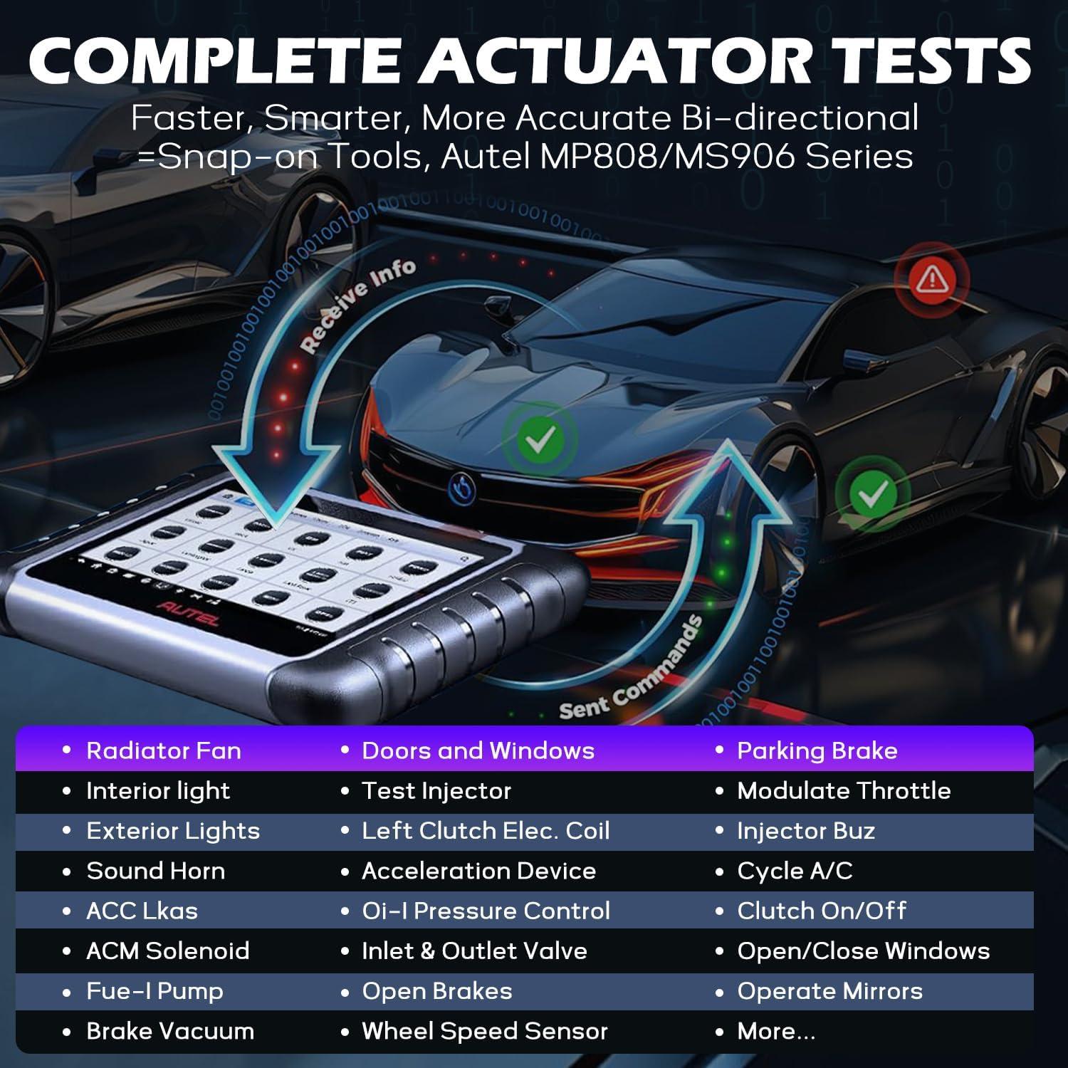 [BI-DIRECTIONAL CONTROL / ACTIVE TEST] Bidirectional control tool Autel scanner MK808Z can perform the real active tests, which can send commands to the vehicle's ECU to drive the actuators to work, such as ABS, window, door, solenoids, valves, wipers, headlamp, etc, helping you quickly find out the problem parts and pinpoint faulty issues. Note: This tool is NOT universal. Please send your VIN to obd2mart @outlook. com to check before purchase.