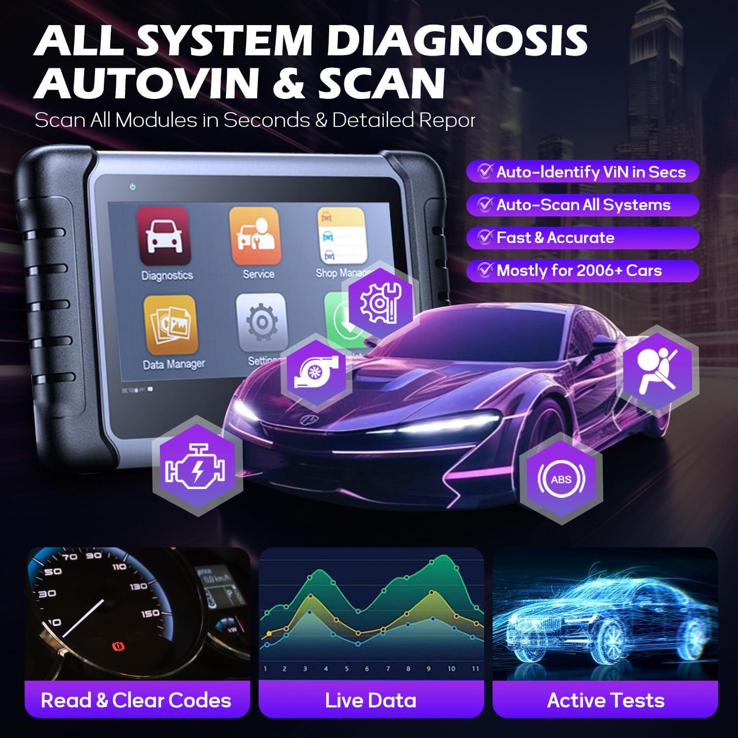 [AUTO VIN & AUTO SCAN] Autel auto diagnostic scan tool MK808Z equipped with Auto VIN and Auto Scan features , based on the latest VIN-base, it can work on specific vehicles to retrieve VIN information and perform comprehensive scans on all available systems for efficient and accurate diagnosis and auto maintenance services. NOTE: Auto VIN feature does NOT work on all cars. Please send your VIN to obd2mart @outlook. com to check before purchase.
