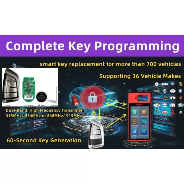 👍[LATEST SMART KEY]👍: These are brand new high-quality hands-free proximity replacements for select vehicles with push-button ignition access. Our key fob is engineered with high security functionality. Replace your lost or broken remote key quickly and easily with this Autel Ikey. Dual-Band, High Frequency Transmitter 315MHz/ 434MHz or 868MHz/ 915MHz, Supports Ultra-Long Range (40 meters/ 130 feet) Frequency Transmission.