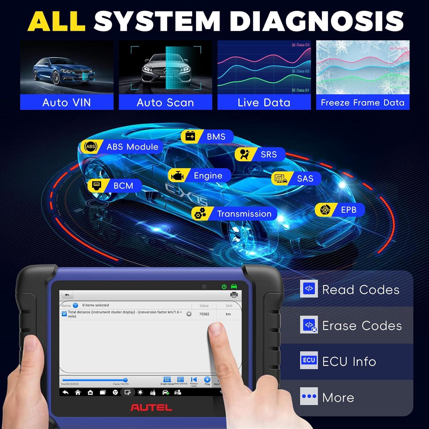 Autel IM508S can work like OEM tool to penetrate deep into all modules on most OBDII vehicles includes some of the latest cars in 2023 to read codes, clear codes, view live data in text, graph & analog, freeze frame data, ECU info, active test functions. Auto-VIN functions enables 1-click car info identification, Auto-Scan support automatic all system scan to have a full picture of car problems.