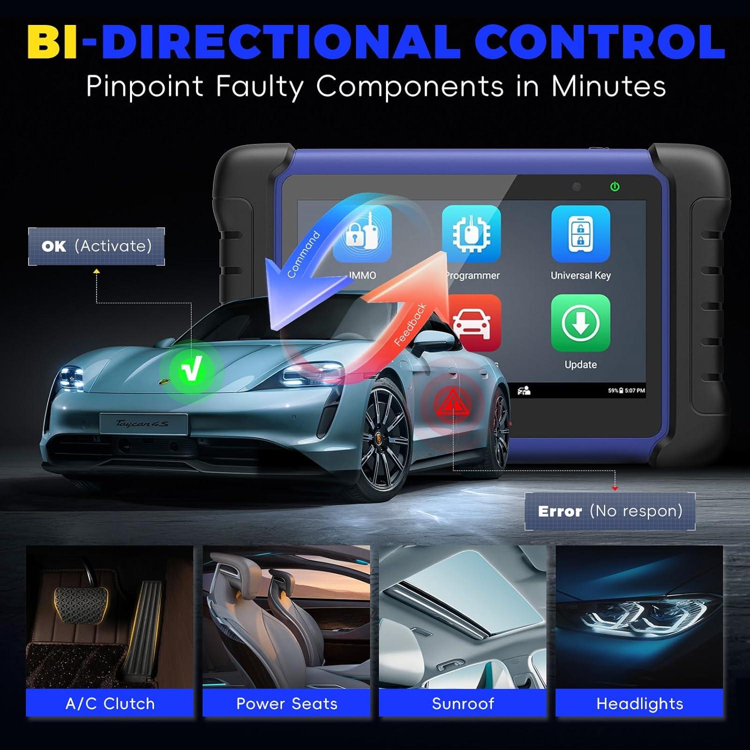 Autel IM508S is also a powerful bi-directional scanner that is able to output command signals to various sensors, actuators and modules such as ABS, window, door, solenoids, valves, wipers, headlamp, seats, etc for instant test results and show DTCs if there is any. This functions allows you to find out faulty parts in a few minutes and even seconds. The active test functions vary by different vehicles and not all components support this function.
