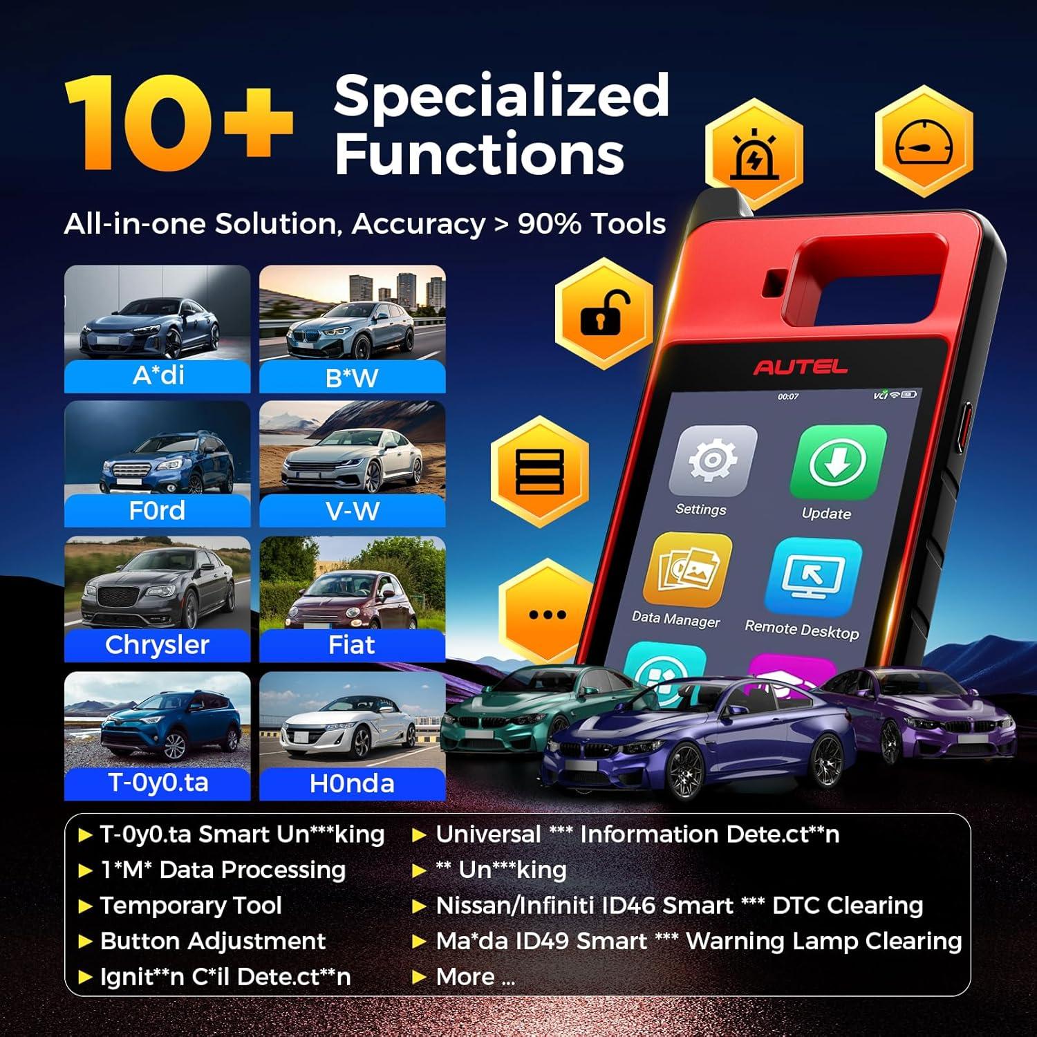 【2025 Enhanced Functions】The 10+ specialized functions is what set Autel KM100E apart from other tools: 1*M* Data Pr0cessing / Igniti0n C0il Detec.t**n / *** Un***king / Toyota Smart Un***king / Temp0rary Tool / Button Adj.ustment and more. >> Igniti0n C0il Detec.t**n: the collection of data from the igniti0n c0il, identification of igniti0n c0il faults, and detec.t**n of trans.p**der types. This EX-clusive function is NOT available in high-end IM508S PRO / IM608 PRO.