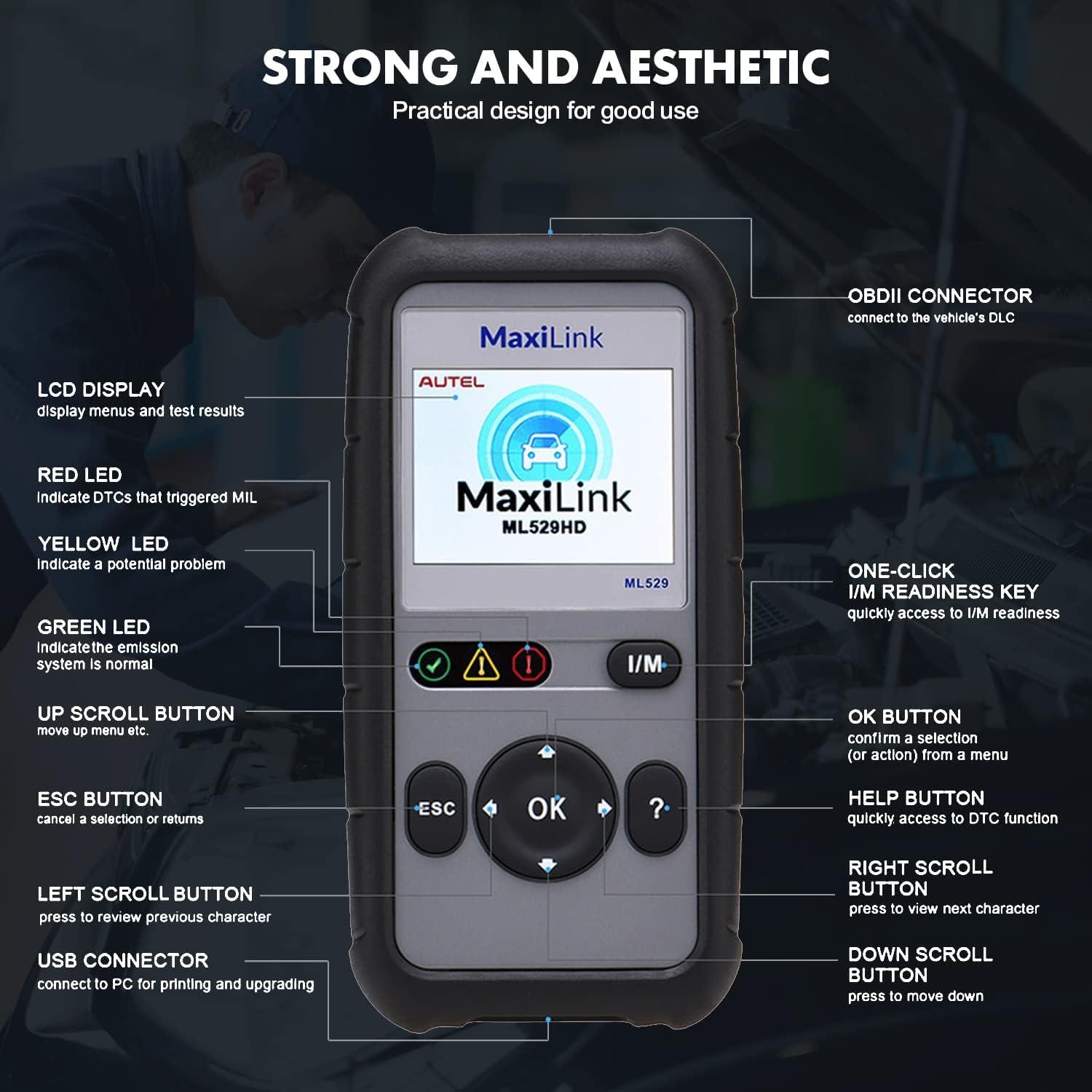 🔥🔥【AUTEL ML619 OBD2 SCANNER UPGRADED VER.OF AL619/ML529】Autel ML619 is currently the most cost-effective diagnosis. Autel MaxiLink ML619 is the perfect tool for detecting faults on vehicle Anti-Lock Brake (ABS) and Supplemental Restraint System (SRS)/Airbag systems, in addition to performing OBD II diagnostics. Both visual and audible cues enhance the tools ability to aid in quick fault discovery, while on-screen troubleshooting tips speed repairs. Autel ML619 is a must-have tool for car repairers and enthusiasts, and a best gift for man/husband.