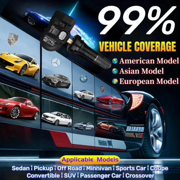 👍[99% Vehicle Coverage]👍 This Autel MX sensor is a user-friendly and cost-effective essential for any shop performing TPMS maintenance. Autel's sensor inventory solution offers 99% vehicle coverage, eliminating the need for distributors to carry hundreds of sensors to fulfill shop orders. At the workshop level, just one Autel sensor can service nearly all TPMS-equipped vehicles, translating to lower repair costs and higher installation efficiency.