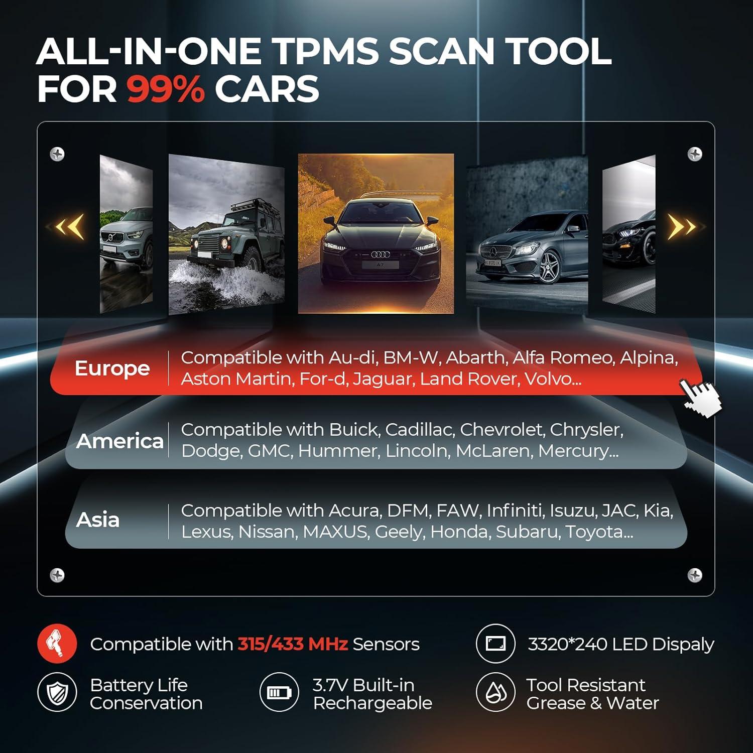 👍【99% Car Coverage, Always Up-to-date】Autel MaxiTPMS TS508WFK isn’t limited to just a section of car brands as other TPMS programming tools. Its lifetime [no-fee] & regular software upgrade meets the needs of most-recent models, covering U.S. top-selling cars: compatible with Toyota, Honda, Chevrolet, For.d, Ben.z, BM.W, Aud.i, etc. Easy upgrade via Wi-Fi & USB; a must for any tire professionals and DIYers. Check the compatibility before purchase.