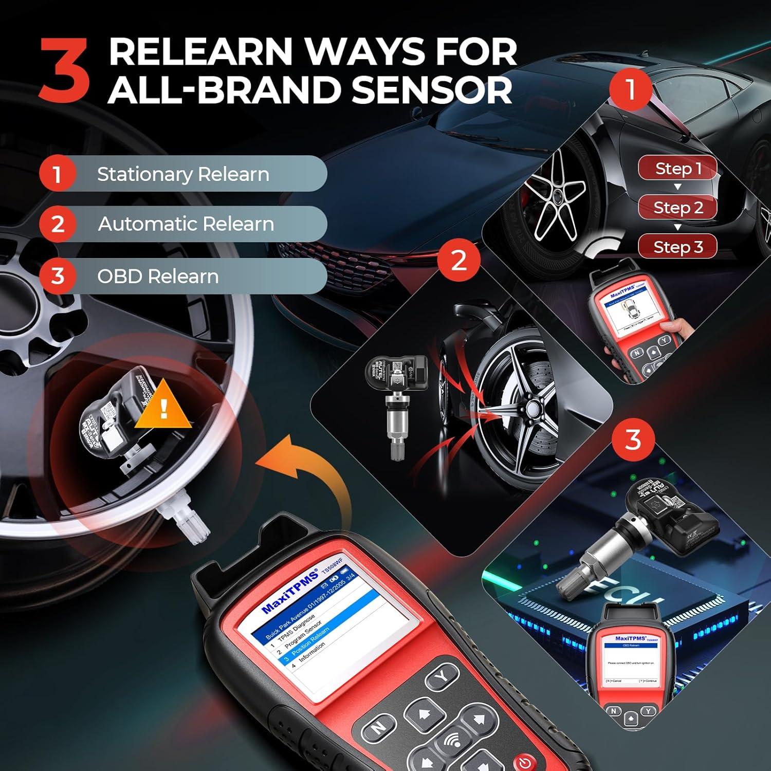 👍 [Autel TS508WF Relearn All TPMS Sensors]: After replacing the sensor, tire pressure module, receiver, adjusting tires, dismounting & modifying tires, etc., relearning is needed. TS508WF scan tool provides 3 relearning ways to turn off the TPMS light and pair the sensors: 1)Automatic Relearn: Complete relearning by driving the car; 2)Stationary Relearn: Require the vehicle to be placed in the “Learn Mode”; 3)OBD Relearn: Write TPMS sensor IDs to the TPMS module via the OBD connector.