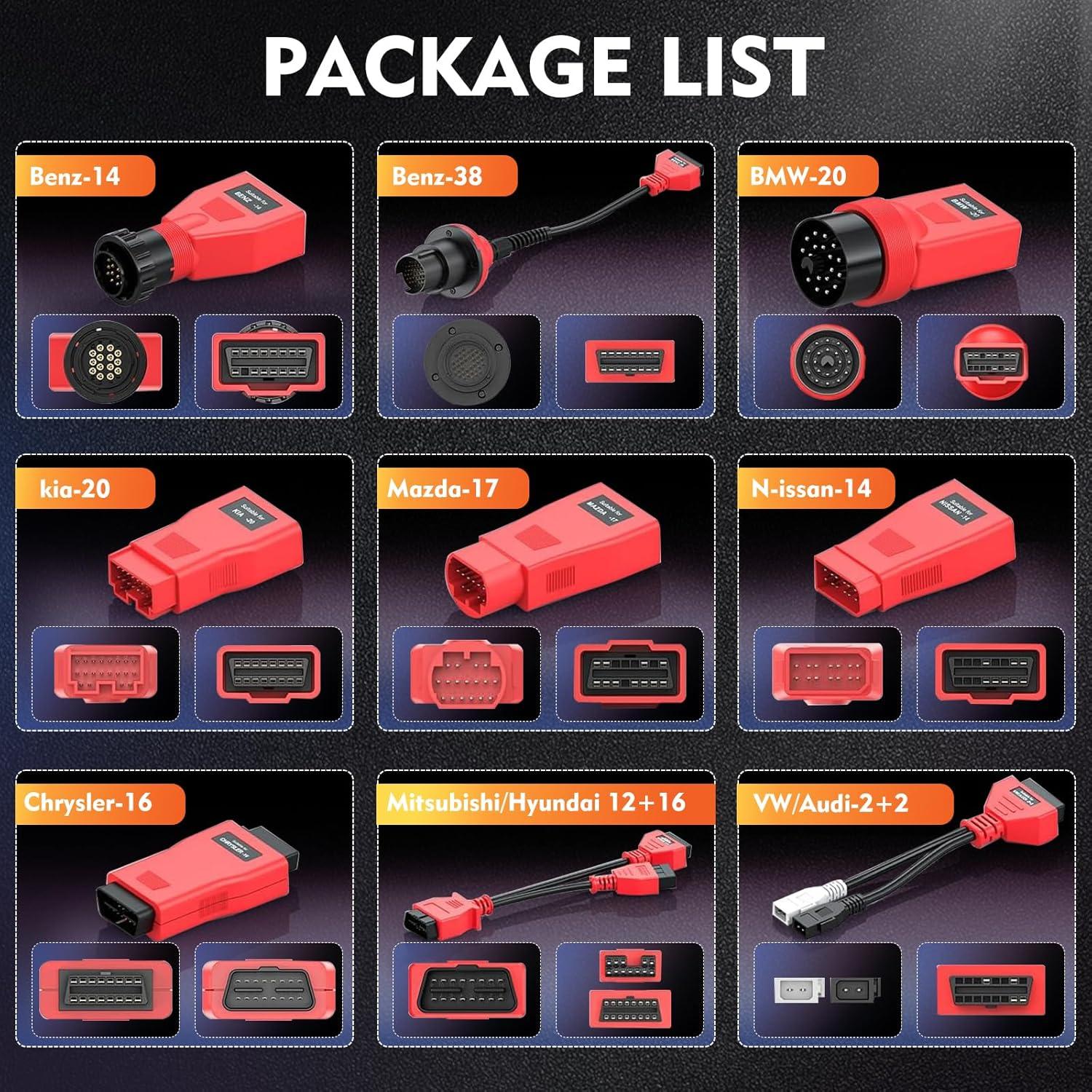 【Compatible Vehicles】Autel Non-OBDII Adapter Kit Connectors for Nissan-14, for Mitsubishi/Hyundai 12+16, for Kia-20, for B~MW-20, for B-enz-38, for VW/Audi-2+2, for Mazda-17, for Chrysler-16 and for B-enz-14.