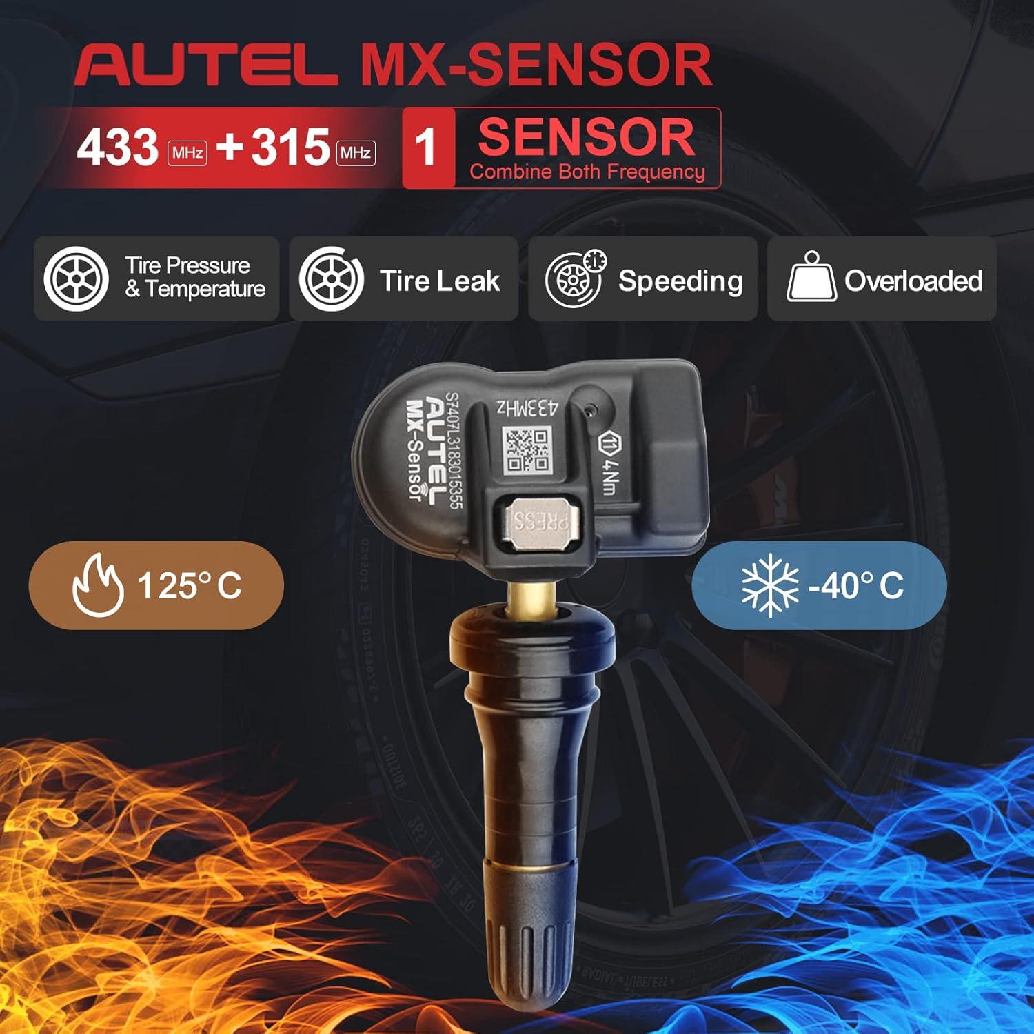 Autel TPMS Sensor MX-Sensor 315MHz+433MHz 2in1 TPS218 Tire Sensor Tire Pressure Monitoring System Sensor Program Universal Replace 98% of OE Sensor SAE Standard J1205/J120 (Metal Valve Stem, 4pack)(Rubber Valve Stem)