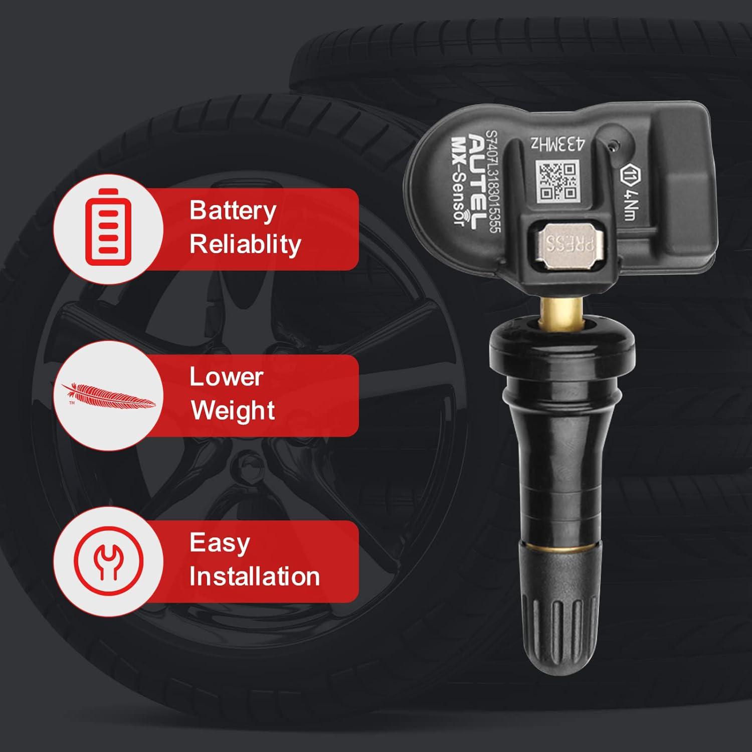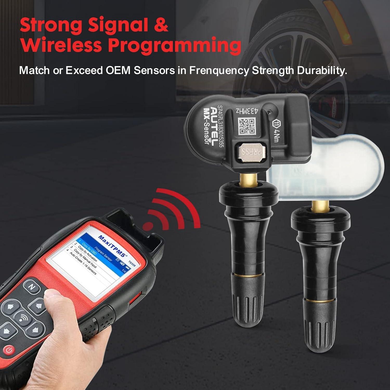 🚗【Autel Programmable Universal TPMS Sensor for OEM Replacement with Wireless programming Tool】Autel is the only manufacturer to produce both TPMS sensors and easy-to-use tools to offer complete OEM TPMS solution. Maximum sensor signal strength to program up to 16 MX-Sensors wirelessly, replace the faulty or low battery life or invalid OE/MX/Other sensors.(Highly Recommend Auteltech MaxiTPMS TS508 to program MX-Sensor, search “…” to purchase).
