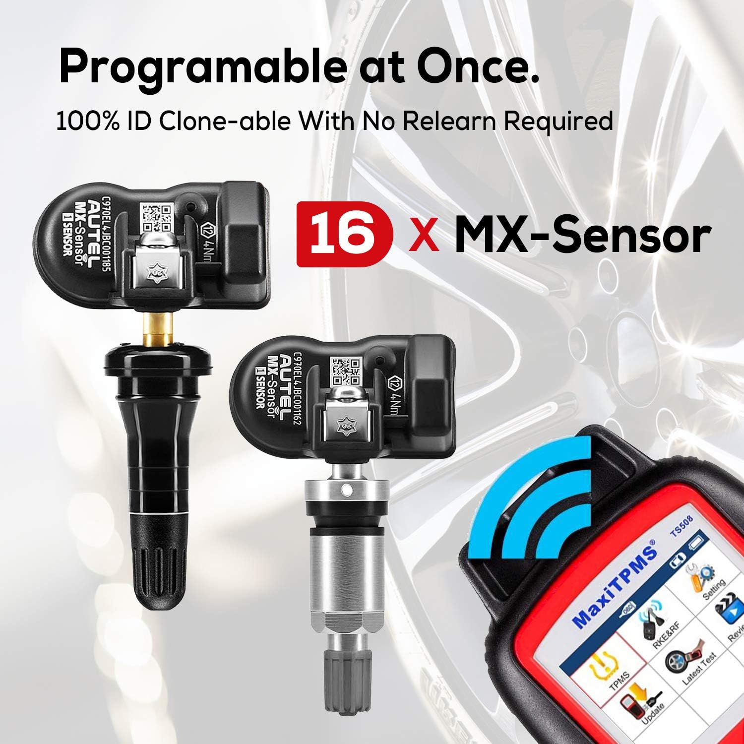🚗【Autel Programmable Universal TPMS Sensor for OEM Replacement with Wireless programming Tool】Autel is the only manufacturer to produce both TPMS sensors and easy-to-use tools to offer complete OEM TPMS solution. Maximum sensor signal strength to program up to 16 MX-Sensors wirelessly, replace the faulty or low battery life or invalid OE/MX/Other sensors.(Highly Recommend Auteltech MaxiTPMS TS508 to program MX-Sensor, search “…” to purchase).